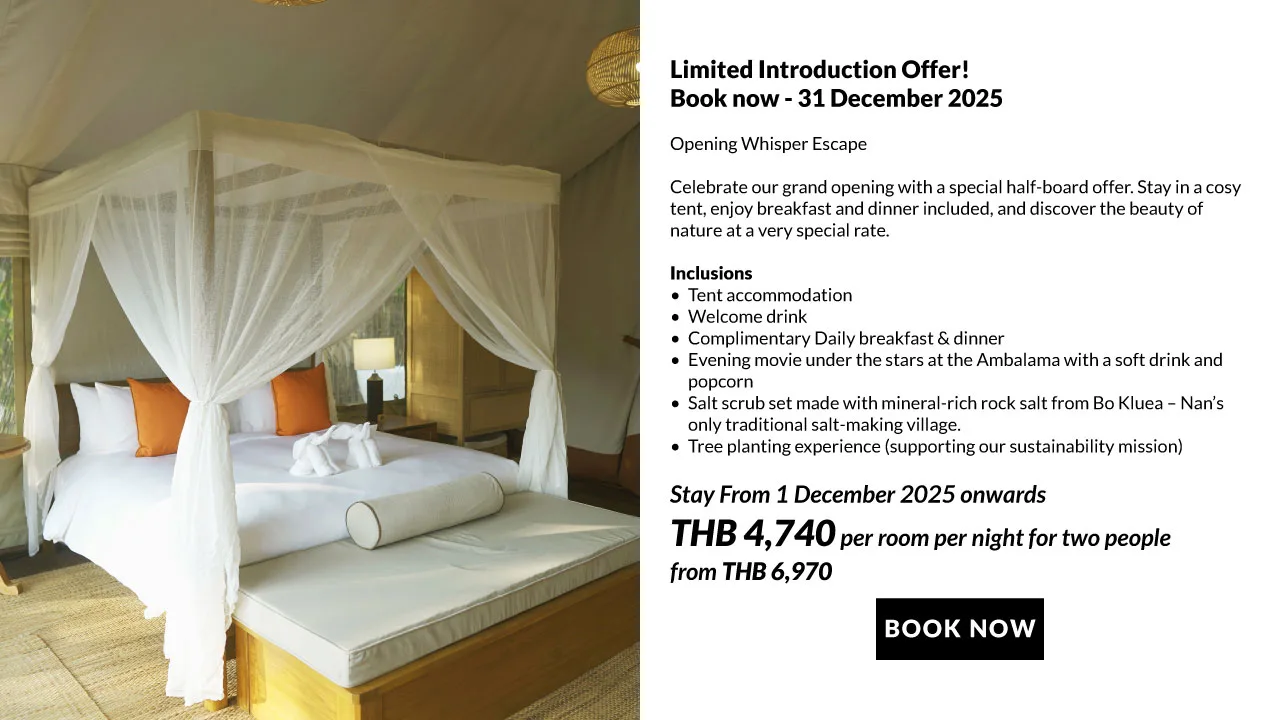 Welcome to Visama Explorer Nan, Thailand’s premier eco-luxury tented camp, where the spirit of Lanna living meets mindful adventure. Nestled in the tranquil highlands of Nan province, our sanctuary blends comfort with culture, offering soft, soulful journeys into authentic northern Thai life.