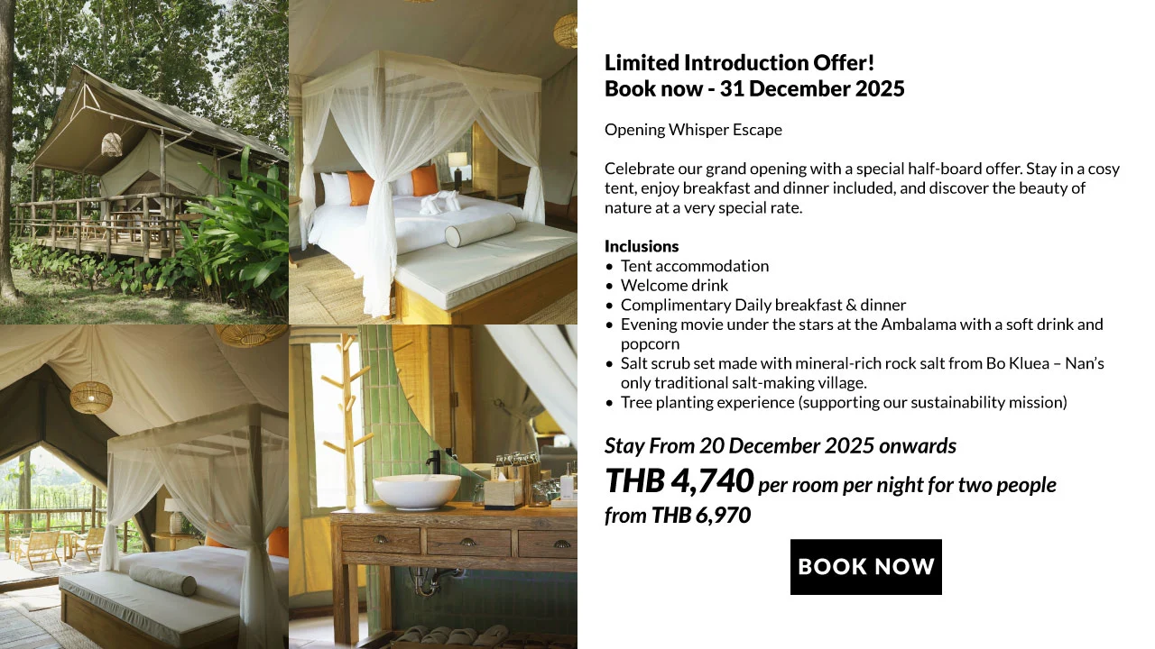 Welcome to Visama Explorer Nan, Thailand’s premier eco-luxury tented camp, where the spirit of Lanna living meets mindful adventure. Nestled in the tranquil highlands of Nan province, our sanctuary blends comfort with culture, offering soft, soulful journeys into authentic northern Thai life.
